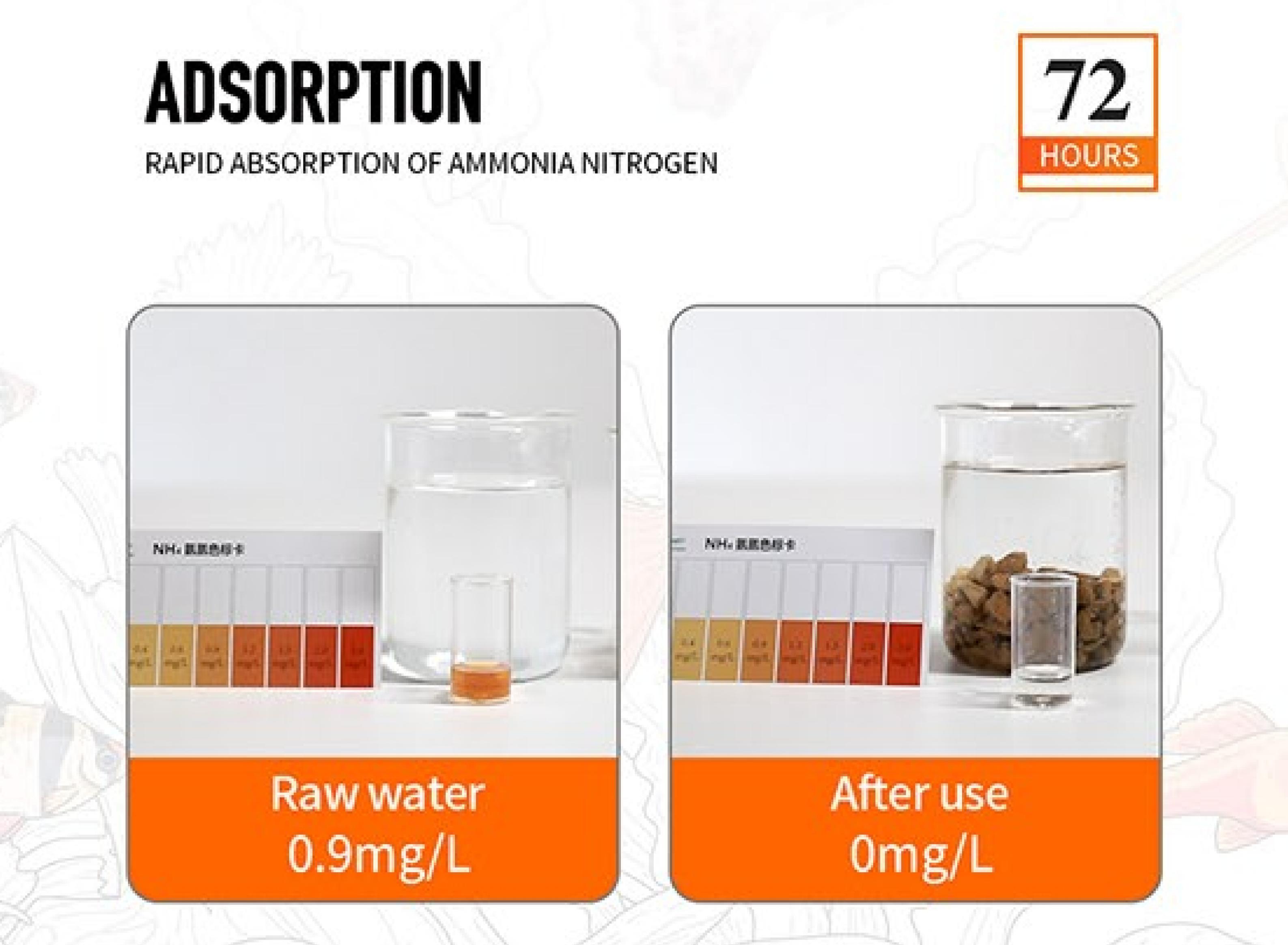 Efficient adsorption within 72 hours, no ammonia leaching