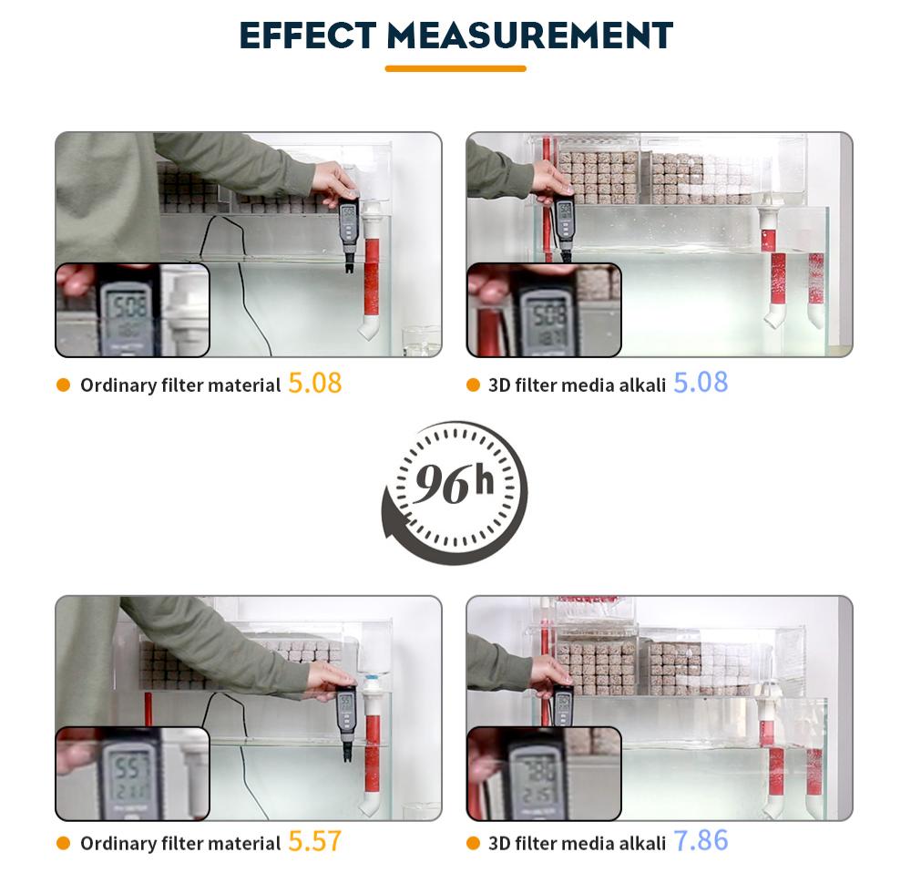 AC Alkali 3D Filter Media leverages innovative three-dimensional porous structure technology. Through rich, continuous interconnected channels, it gently raises pH from 5.08 to a stable 7.86 within 72 hours, preventing stress from violent swings. The microporous architecture simultaneously provides vast colonization space for nitrifying bacteria, delivering dual benefits of pH regulation and water purification. Easily applicable to sumps, trickle filters, canisters, and other systems, it offers a long-term, stable solution for healthy aquatic ecosystems.