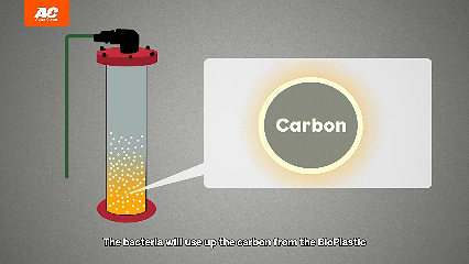 AC Bio-Pellets are 100 % biodegradable polymer beads (PHA/PHBV copolymers) that act as a carbon-driven bio-reactor. As tank water continuously tumbles the pellets, aerobic bacteria colonise their surface, using the polymer as a carbon source and simultaneously consuming dissolved NO₃⁻ and PO₄³⁻ to build bacterial biomass. As the biofilm thickens, micro-anoxic zones form inside the beads, triggering extra denitrification—a double nitrate punch.